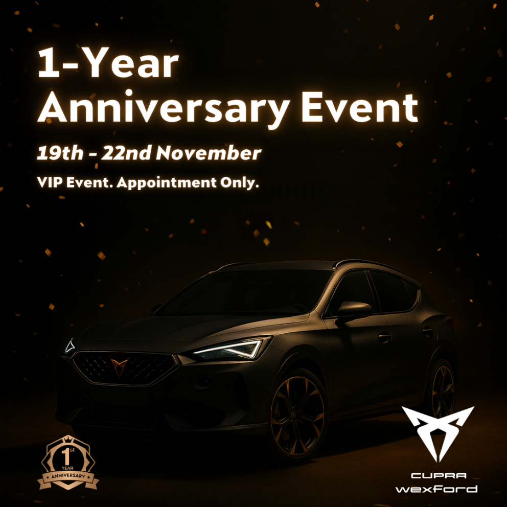 Over the past year, we’ve loved being located in Wexford, and this special event is our way of saying thank you. Unlike any other occasion, attendees will have the chance to drive away in a brand-new CUPRA, plus receive an additional Anniversary VIP bonus – a truly unforgettable reward for being part of our journey.